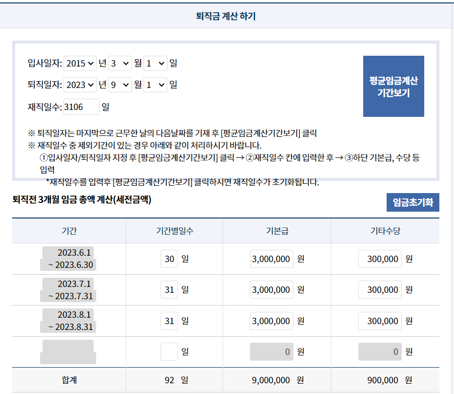 퇴직금 계산하기