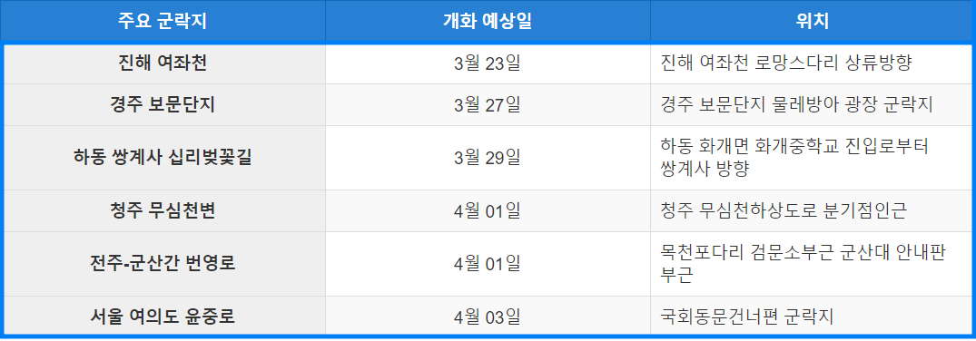 2024 전국 벚꽃 개화시기 및 군락지 관측장소