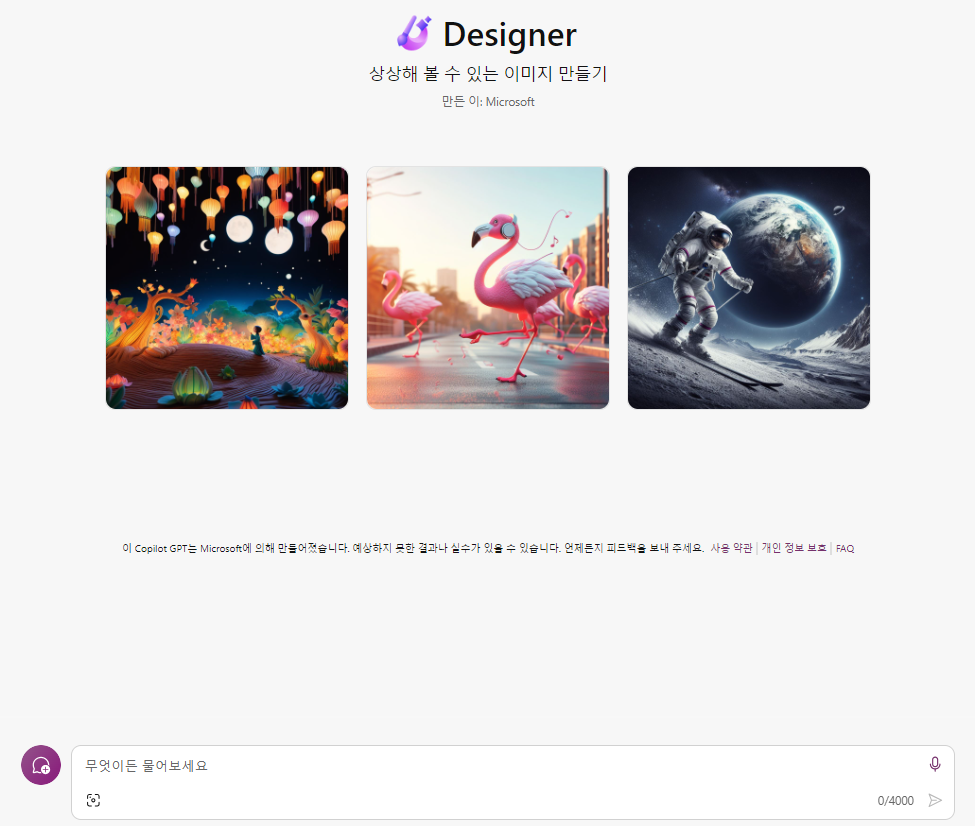 내가 필요로 하는 이미지의 구체적인 요구사항을 입력하면 상상해 볼 수 있는 이미지를 만들어 줍니다.