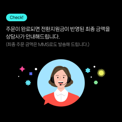 ③ 주문이 완료되면 전환지원금이 반영된 최종금액을 상담사가 안내하며 안내한 내용을 주문자의 MMS로도 발송해 줍니다.
